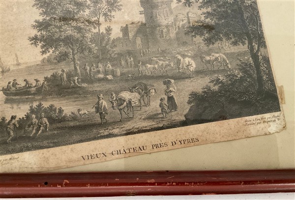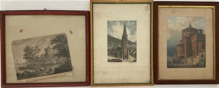 Lotto di tre incisioni raffiguranti paesaggi e cattedrali misure diverse (difetti e rotture)