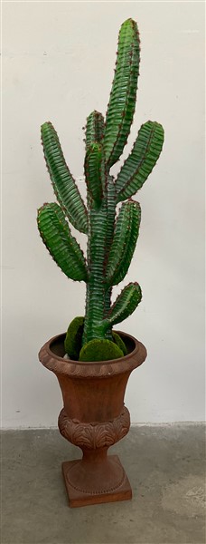Cactus in materiale plastico con vaso in terracotta. (h cm 150) (difetti)