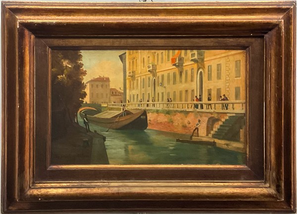 Scuola lombarda "Via Senato a Milano 1857" 1857 olio su compensato (cm 19x31)I