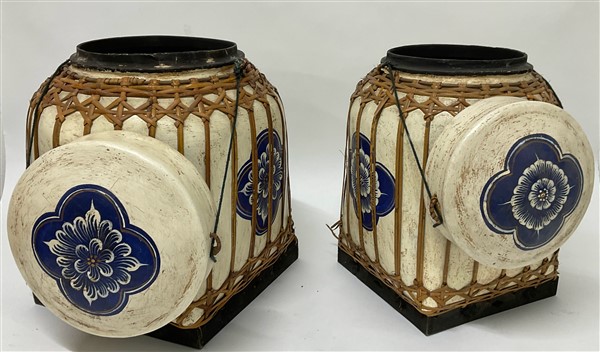 Due contenitori con coperchio in bambù dipinto ricoperti internamente ed estern