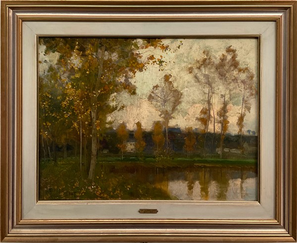 Alfred East "Paesaggi fluviali" coppia di dipinti ad olio su tela (cm 40x55) Uno