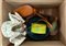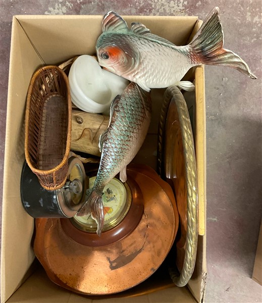 Due cartoni contenenti numerosi vassoi, cestini e altri oggetti di materiali e usi diversi (difetti)
