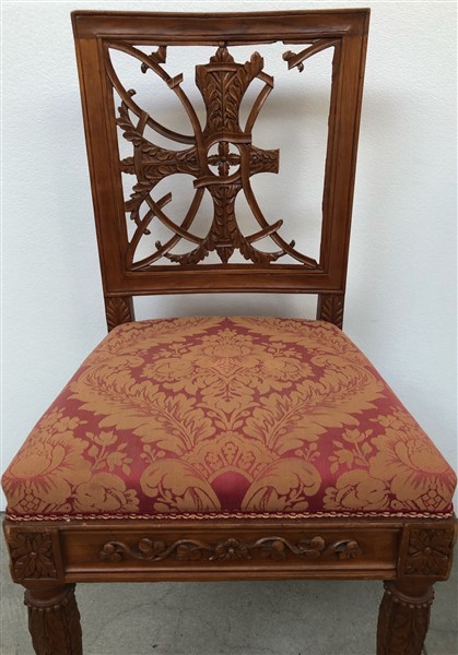 Gruppo di sei sedie in ciliegio, schienale riccamente traforato e intagliato a motivi vegetali, fascia e gambe anteriori intagliate a motivi floreali. Veneto, secolo XVIII (difetti e mancanze)