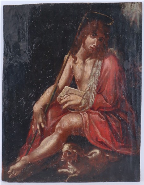 Lot 1929 | Ignoto Antico dipinto raffigurante San Giovanni Battista Olio su tavola, cm 35