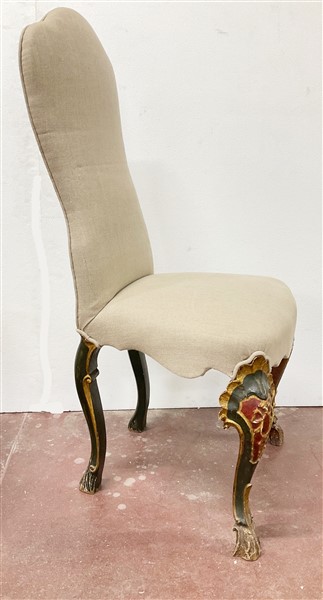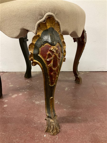 Lotto composto da coppia di antiche sedie in legno intagliato e dipinto con gam