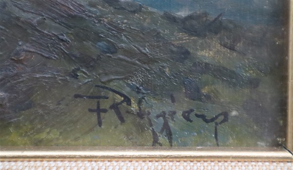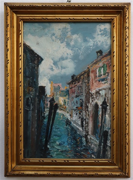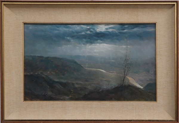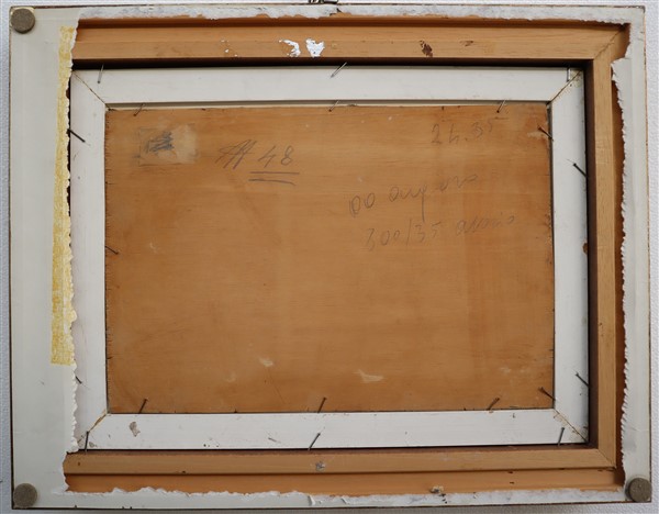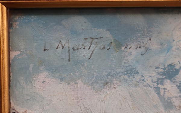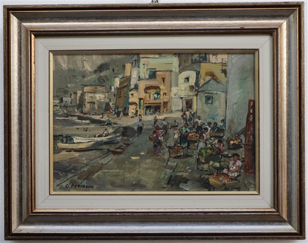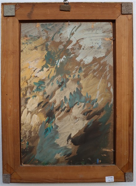 Lotto di tre dipinti ad olio di diverso autore, soggetto e misure (misura max cm 30x50) uno su cartone, uno su cartone telato e uno su compensato, firmati. In cornici
