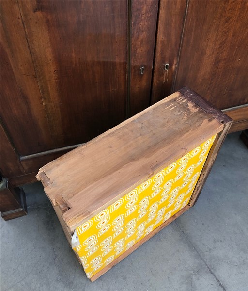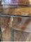 Credenza in mogano a due ante e due cassetti sul fronte, filettata in metallo.