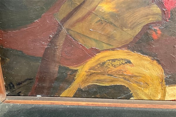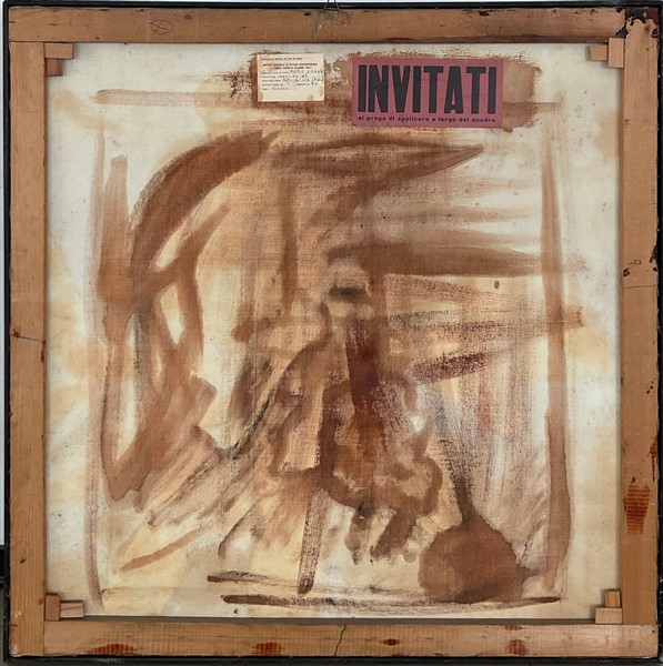 Ratto di Lia" olio su tela (cm 90x90) firmato in basso a sinistra; etichetta al retro "Mostra Nazionale di pittura contemporanea- III premio Cinisello Balsamo 1965"