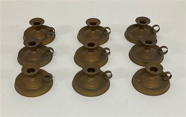 Gruppo di nove piccoli portacandele in ottone (difetti)