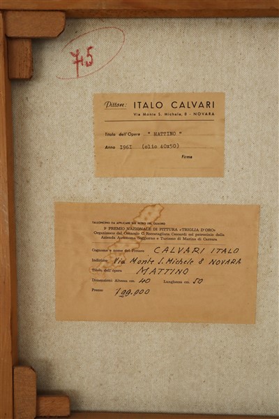 Lot 1949 | Italo Calvari "Mattino"1961, olio su tela (cm 40x50) firmato in basso a destra;