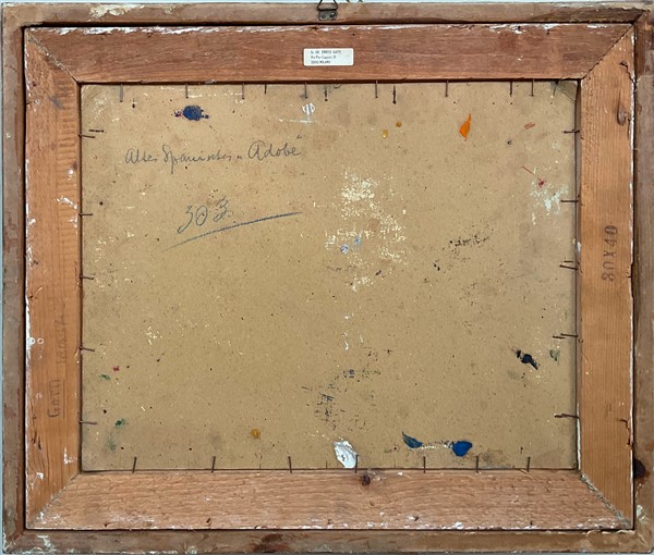"Altes Spanisches "Adobe"", olio su cartone pressato (cm 30x40) Firmato in basso a destra. Titolato al retro. In cornice (difetti e cadute)