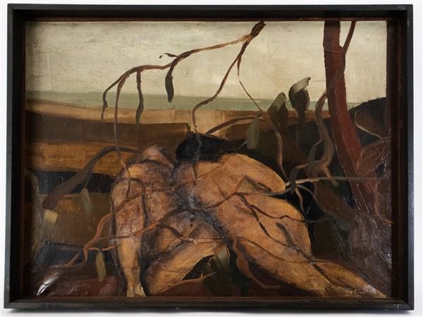 "Figure in un paesaggio" 1964, olio su tela (cm 60x80) firmato e datato in basso a sinistra