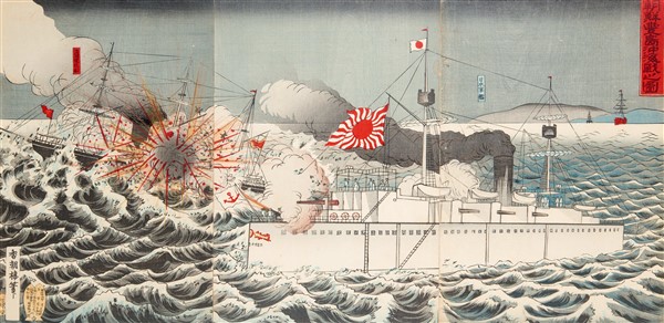 Lotto composto da due trittici, uno raffigurante la guerra cino-giapponese, l'a