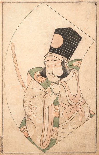 An original plate by Buncho (?-1791) from the work E-hon butai ogi ("Illustrated Book of Stage Fans"), 1770 (defects)