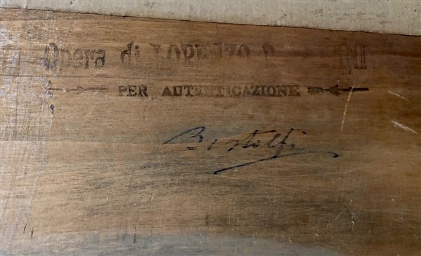 (attr) "Marina con barche" olio su tavola (cm 46x29.5) datato 18/09/1893 in basso a destra. Al retro: autentica di Bistolfi all'autore. In cornice (difetti)