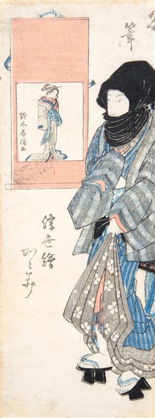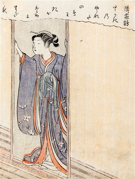 Lotto composto da una stampa a colonna di Koryusai e due pagine da due diversi