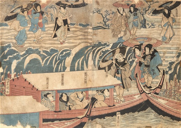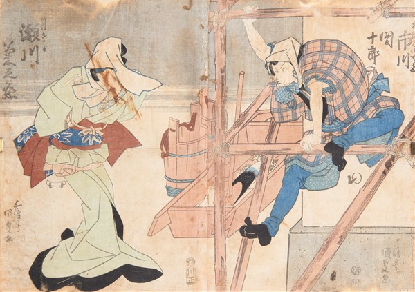 Parti di due polittici dalla scuola Utagawa (difetti)