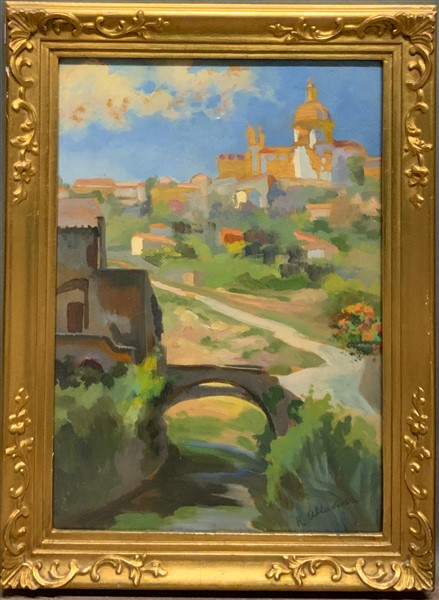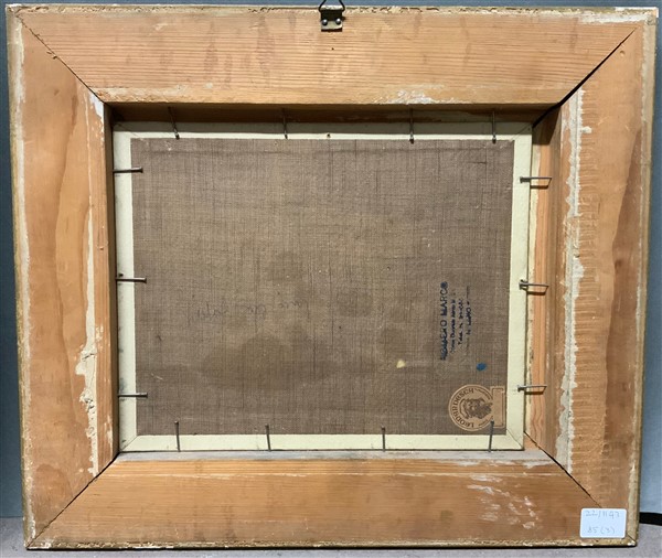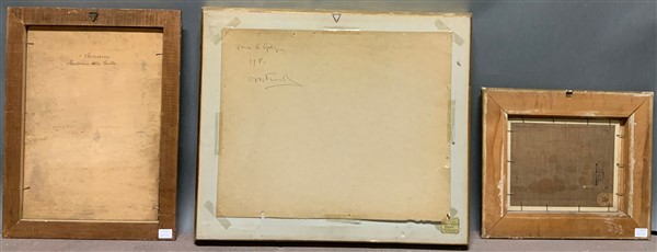 Lotto di tre dipinti ad olio di diversi autori, tecniche, soggetti e misure. Due dei quali firmati in basso. In cornice (difetti)