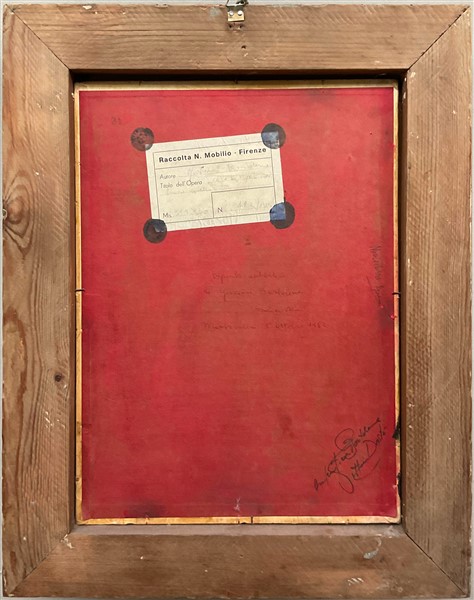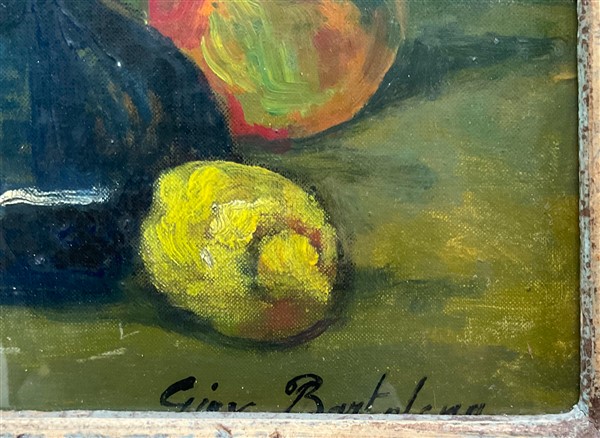 Ignoto, "Vaso di fiori e frutta" olio su cartone telato (cm 39x29) Reca iscrizione non coeva in basso a destra. Al retro: iscrizioni e cartiglio. In cornice