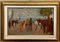 "Scena di genere con figure e animali" olio su tavola (cm 27x45) Firmato in basso a sinistra. Al retro: firmato e cartiglio. In cornice