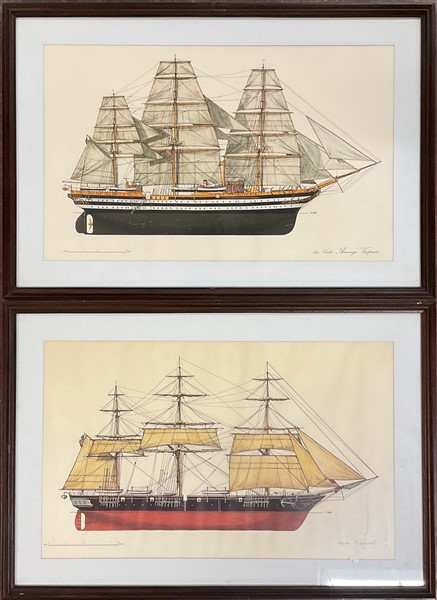 Lotto di tre litografie raffiguranti dei velieri (misure diverse) in cornice