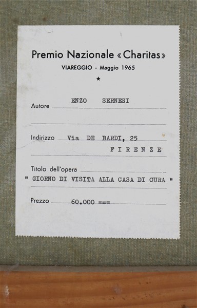 Enzo Sernesi "Giorno di visita alla casa di cura" tecnica mista su tela (cm 50x7