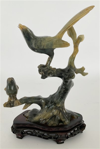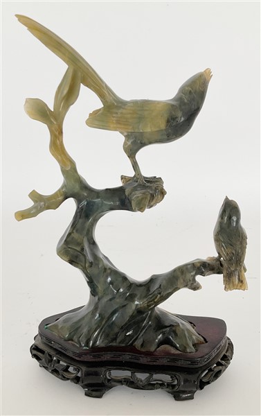 Scultura in pietra dura raffigurante volatili su ramo Cina, sec. XX (lievi dife