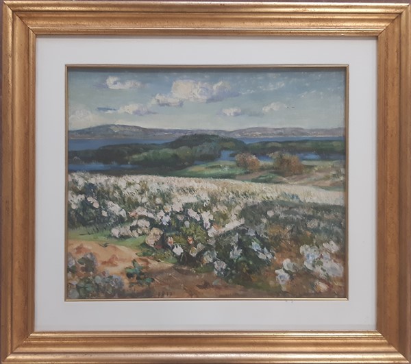 Lot 1992 | Emmanuel Charles Benezit "paesaggio mediterraneo", olio su tela (cm 47x55), firm