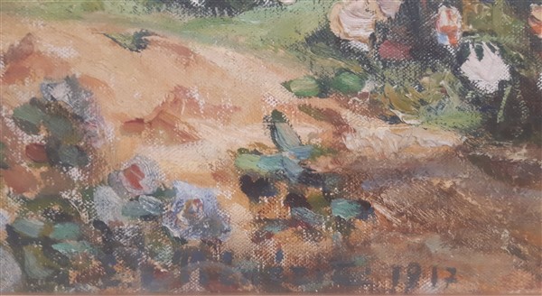 "paesaggio mediterraneo", olio su tela (cm 47x55), firmato e datato 1917 in basso a sinistra