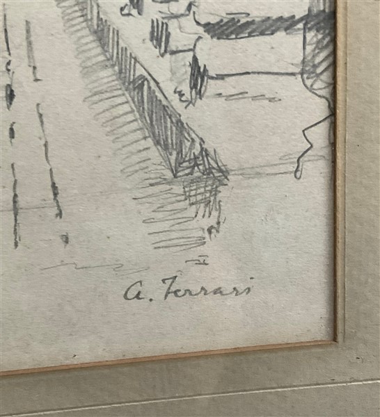 Arturo Ferrari "Colonne di San Lorenzo" matita su carta (cm 21,5x13) Firmato in