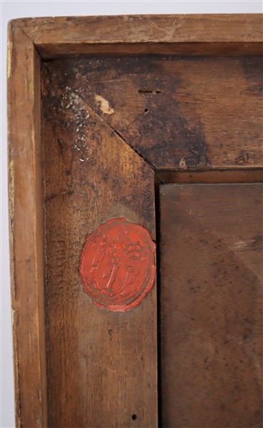 Al retro sul telaio: timbro in ceralacca