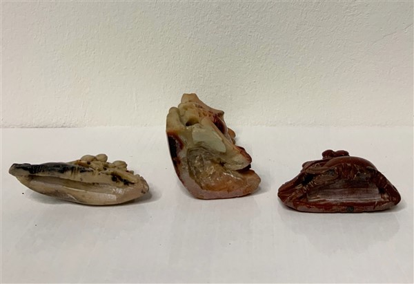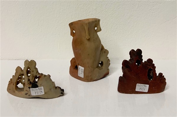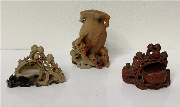 Lotto composto da un vasetto e due piccoli sciacqua pennelli in pietra saponaria di diversa fattura