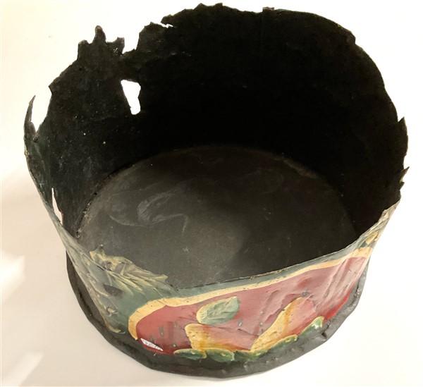 Lotto composto da un cestello in tollepaint, due abat jour in ceramica ed un ma