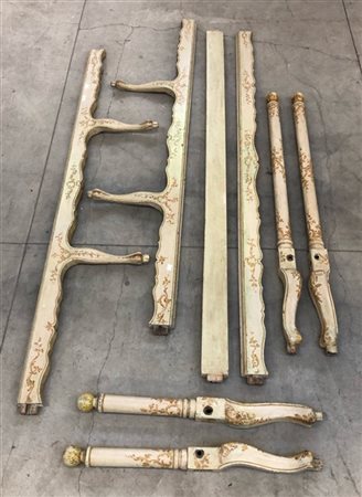 Letto matrimoniale in legno laccato avorio e decorato in policromia a motivi vegetali e volute, montanti torniti, fascia anteriore sagomata. Secolo XVIII (difetti)