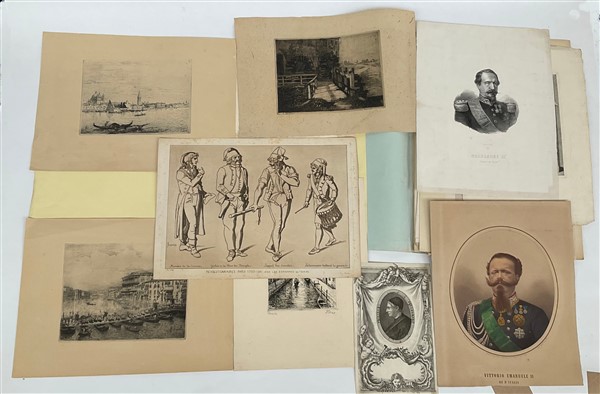 Lotto composto da due cartelle contenenti numerose stampe di soggetto, epoca e