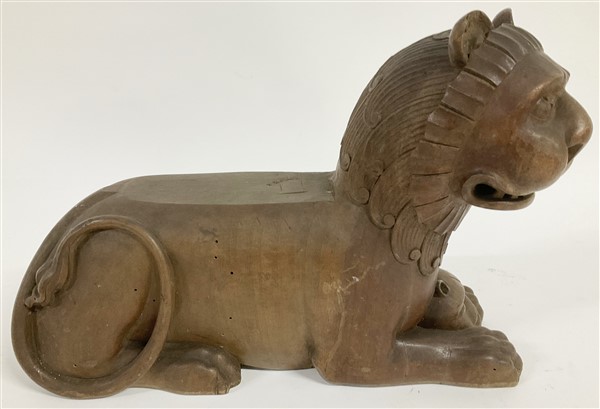 Coppia di sculture in legno raffiguranti leoni accovacciati Sud-est Asia (cm 2
