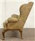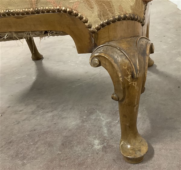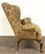 Poltrona bergère con braccioli sagomati. Gambe e fasce intagliate. Rivestita in
