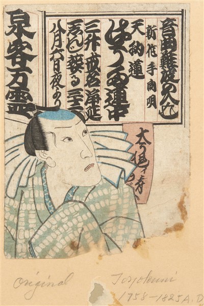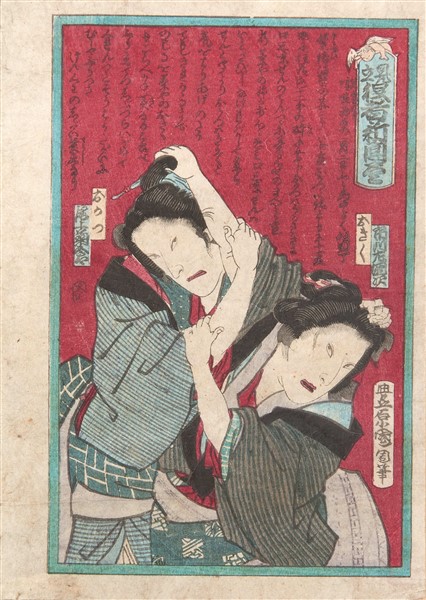 Lotto composto da un foglio di un trittico di Chikanobu e due pagine di due div
