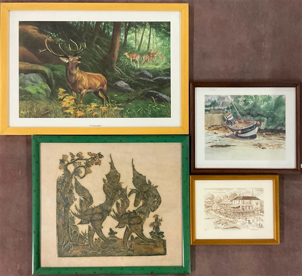 Lotto composto da cinque riproduzioni ed un pannello tailandese, misure diverse