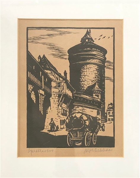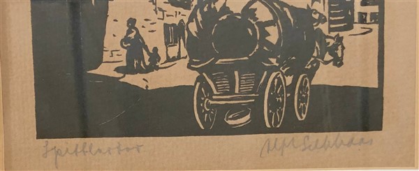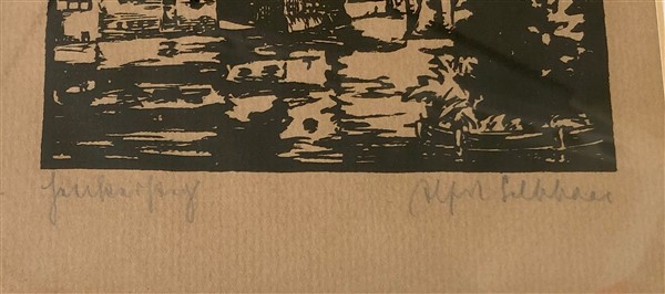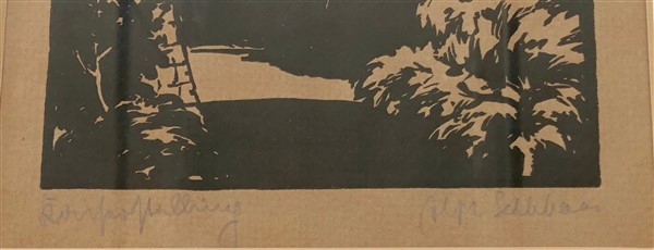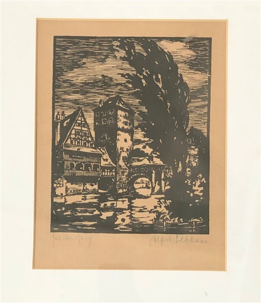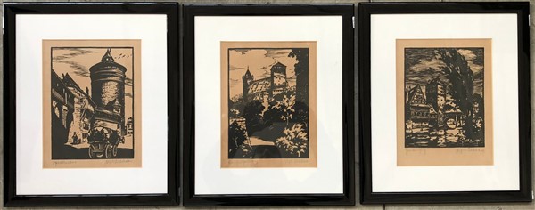 Firma indecifrata, lotto composto da tre xilografie raffiguranti paesaggi nordici (cm 25x19 circa) firmate e titolate in basso a matita
