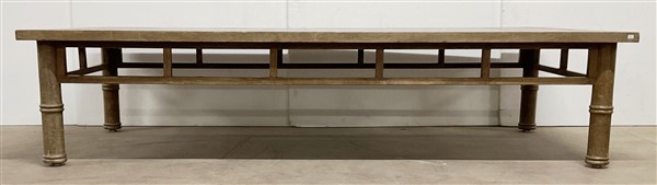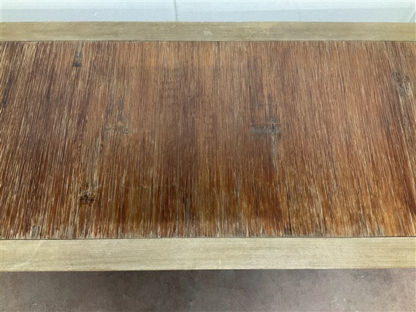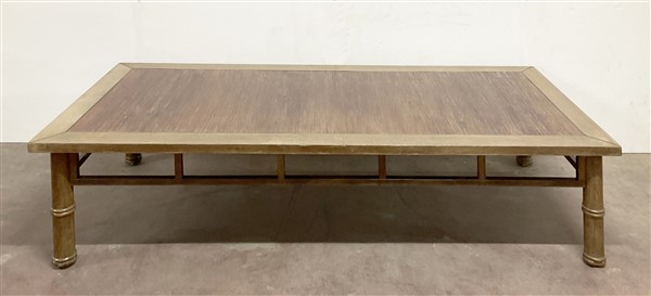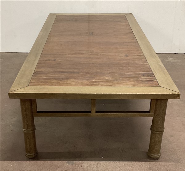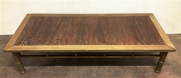 Tavolo da salotto di forma rettangolare con gambe tornite a finto bambù riunite da traverse (cm180x40x80) (difetti)