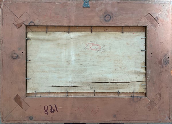 Lorenzo Gignous "Paesaggio con figure" olio su compensato (cm 19x38) Firmato in