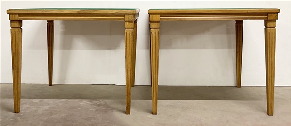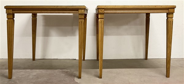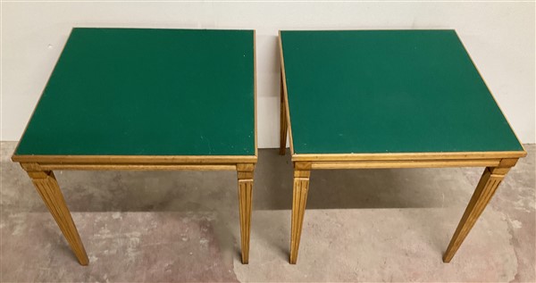 Lot 2189 | Gruppo di quattro tavolini da gioco in legno chiaro con gambe rastremate e scan