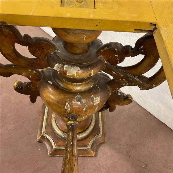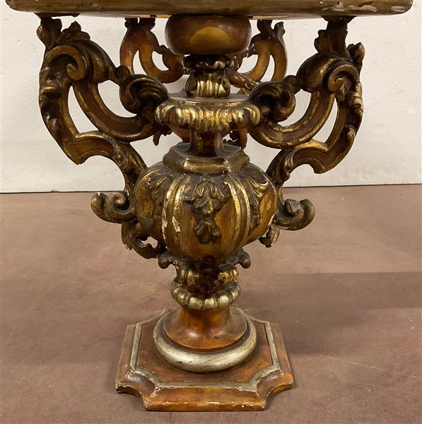 Tavolo da salotto in legno intagliato, laccato e dorato. Montanti a finti vasi