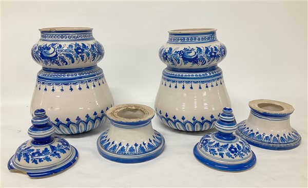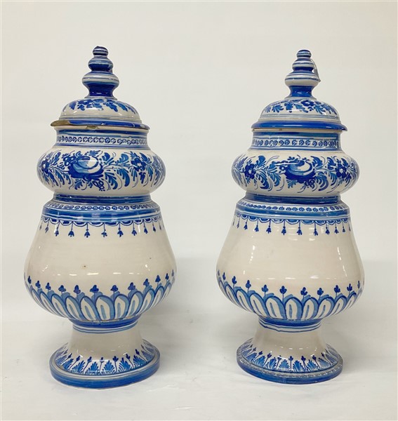 Lot 2202 | Coppia di vasi in ceramica di forma mossa decorati nei toni del blu a fiori e v