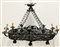 Grande lampadario in fero battuto e verniciato nero a quattordici luci riccamen