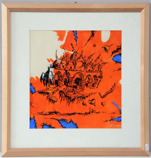 In cornice (47x45 cm), una grafica eseguita per il "Lingotto d'oro - Torino, del 1984 e una litografia, prova d'artista (cm 57x41) firmata in basso a destra, in cornice