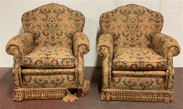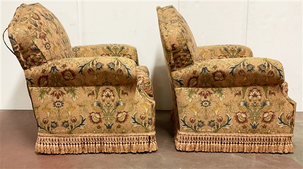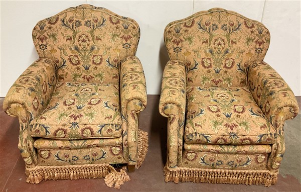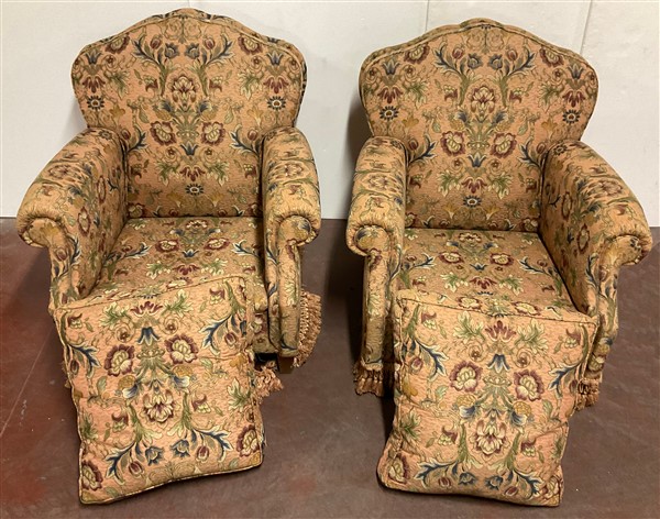 Lot 2240 | Coppia di poltrone con schienale sagomato rivestito in tessuto a fiori (difetti