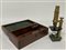 Microscopio con custodia in legno e accessori. Ultimo quarto secolo XIX (difett