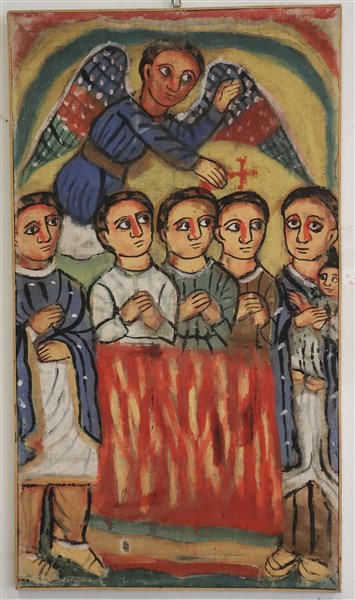 Lot 2252 | Dipinto etnico copto su garza di cotone, (cm 88x50) In cornice (gravi difetti)